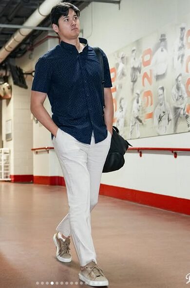 こちらは2025年11月2日に私服姿で球場入りする様子をMLB公式があげたもの。シンプルでかっこいいですよね!SNSでも「めちゃかっこいい!」「えらいおしゃれやん?」「あらやだお洒落」など大好評でした。